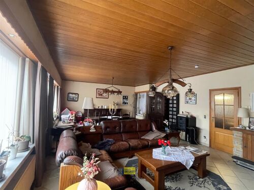 Gelijkvloerse woning met 3 slaapkamers en tuin Deze goed onderhouden woning uit 1978 is volledig gelijkvloers en biedt een comfortabele, praktische indeling. Je komt binnen in een ruime inkomhal met apart gastentoilet. De lichtrijke leefruimte staat in verbinding met de eetkamer en de keuken, die uitgerust is met voldoende opbergruimte. Aansluitend aan de keuken bevinden zich een kelder en een berging/wasplaats extra handig in het dagelijks gebruik. De woning is voorzien van verwarming op aardgas. Er zijn drie volwaardige slaapkamers en een badkamer met ligbad, douche en dubbele lavabo. Achteraan de woning vind je een aangename veranda die uitkijkt op de tuin een rustige plek om te genieten in elk seizoen. Troeven: ·Alles op het gelijkvloers ·3 ruime slaapkamers ·Lichtrijke leefruimte ·Praktische berging en kelder ·Veranda met zicht op de tuin ·Verwarming op aardgas Op zoek naar een comfortabele woning zonder trappen? Neem vandaag nog contact op voor een bezichtiging!