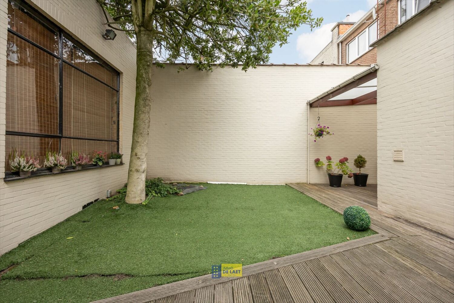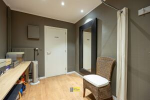 In centrum Schoten en op een locatie met veel visibiliteit bieden wij u deze uitstekend onderhouden handelswoonst met achtergelegen magazijn/atelier welke bereikbaar is via de Kruispadstraat. De woning is geschikt voor verschillende doeleinden: van praktijkwoning, woning met winkel en opslagplaats tot gewoonweg een ruime EGW met polyvalent bijgebouw/garage (ca. 65m² voorzien van dubbele poort en achtergevel breedte van ca. 8.00m) Binnenkomen doe je via de winkel of kantoorruimte met grote raampartijen of etalage met aanpalend een doorlopende berging of kantoorruimte die op haar beurt weer doorgang verleent naar het privé woongedeelte. Het wonen speelt zich dus af op het gelijkvloers van waar men zicht heeft vanuit de ruime woonkamer op de aangelegde binnentuin; tevens is er via de smaakvol vernieuwde leefkeuken met alle hedendaags comfort een doorgang naar de tuin en achtergelegen gebouw. Op de 1ste verdieping bevindt zich de grote slaapkamer met aanpalend een volledig ingerichte dressing, een 2de ruime slaapkamer en verder de ingerichte badkamer. Op de zolderverdieping, welke momenteel dienst doet als zolder en hobbyruimte, kan men nog 2 tot mogelijk 3 ruime slaapkamers voorzien. Samengevat zorgen de uitstekende locatie, aanzienlijk woonvolume als ook het polyvalente bijgebouw van deze unieke woning voor heel wat mogelijkheden. Is uw interesse voldoende gewekt? Boek dan snel een afspraak, want voor je het weet ben je misschien wel TE LAET!