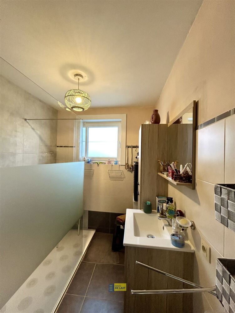 Rustig en centraal gelegen verzorgd gelijkvloers appartement (80 m²) met terras en private kelderberging, gesitueerd in een recent gebouw (2008) met 4 appartementen, via de inkomhal met apart toilet betreedt u een ruime woonkamer van 35 m² op tegelvloer met doorlopend een open keuken met berging/wasplaats, er zijn 2 slaapkamers voorzien : één van 8 m² dewelke momenteel als berging dienst doet en een kamer van 12 m² met toegang tot een gezellig terras, verder is de badkamer ingericht met een inloopdouche en wastafel, de vaste maandelijkse kosten bedragen € 40, e-peil = C
